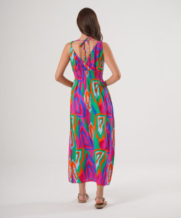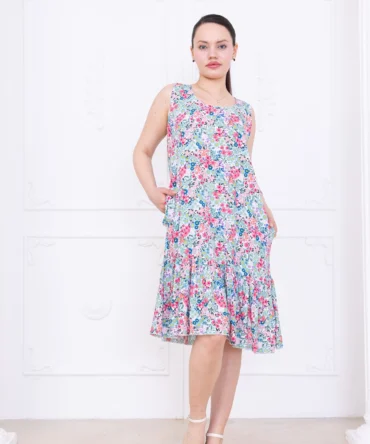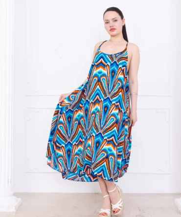 Yazlık Uzun Rahat Dokuma Elbise Renkli
