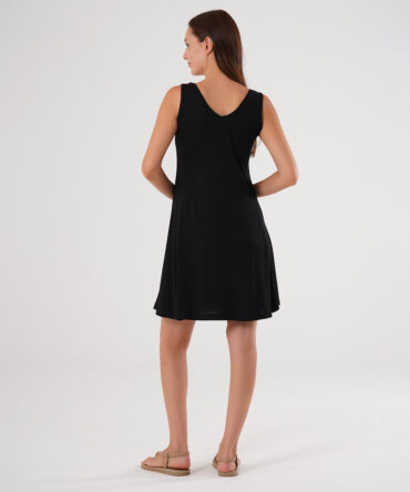 Yazlık Uzun Rahat Dokuma Siyah Elbise
